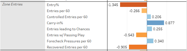 On the blueline, things aren't horrible. They aren't good either as they give up 11.49 high-danger chances per 60 compared to the Hawks' 13.71 at 5v5.