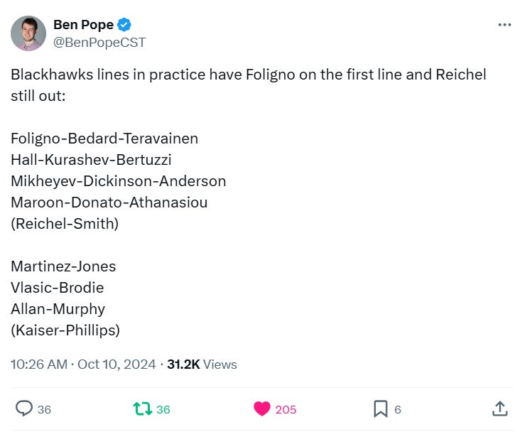 The Jets are coming off of handing a spanking to the Edmonton Oilers. Connor Hellebuyck shut the Oilers out 6-0. Which means the Hawks get to face a pissed-off McDavid tomorrow night.