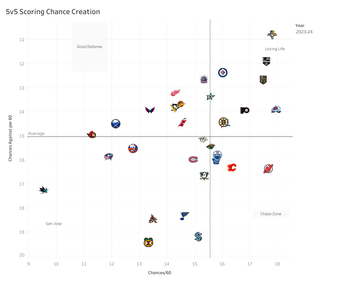 Their goals share is also not horrible. They own 51.16% of all goals in 5v5 situations.
