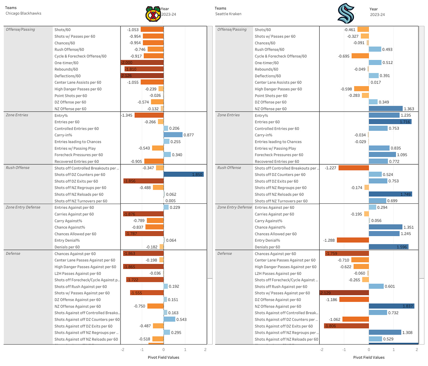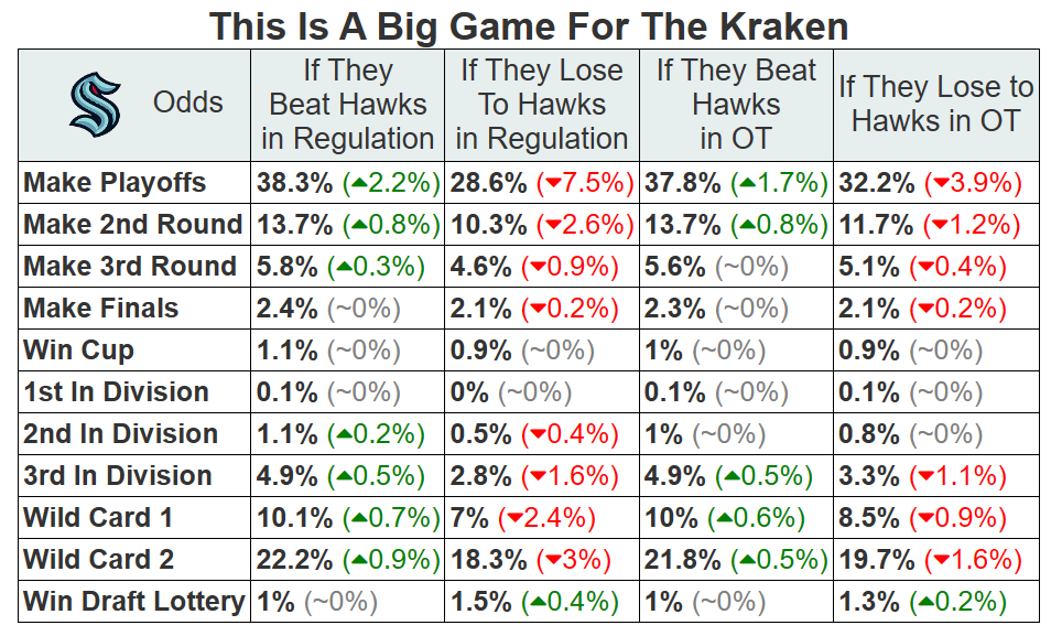 Looking at nerd numbers, the Kraken are the better team. But the Hawks either play well against great teams or pretty poorly against everyone else.