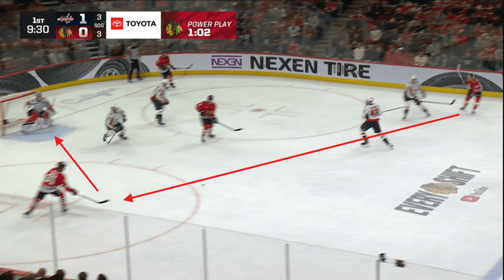 It's annoying that the Hawks had 3 back-to-back powerplays. The first powerplay had a nugget of hope, one of those glimpses into the future I alluded to. Vlasic passes to Bedard and makes a cross-ice pass to Frank Nazar who whiffs on the shot. It seemed like the Hawks struggled to get set up, and when they did they were looking for the right time to score (something that's been ingrained in this team's DNA since 1926).