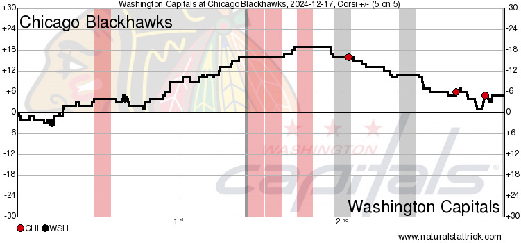 The Blackhawks played solid 5v5 hockey during the first two periods. The Hawks had a 63.64 Corsi in the first and a 68.42 Corsi in the second. Great possession, they just couldn't score. The Hawks pressed on in the third while the Caps decided to wake up. The Hawks' forechecking and big saves from Arvid Soderblom kept them in the game and they scored 3 goals. No answers from the Capitals.