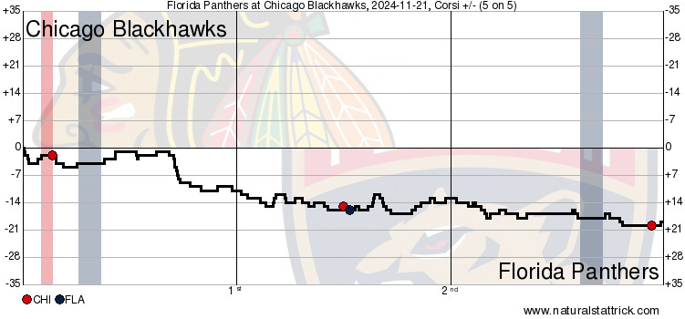 When Bedard was on the ice, the Hawks had 15 shot attempts against from Sam Reinhart.