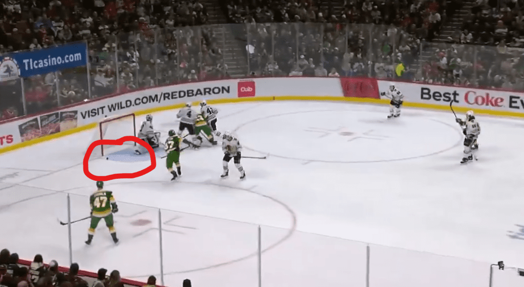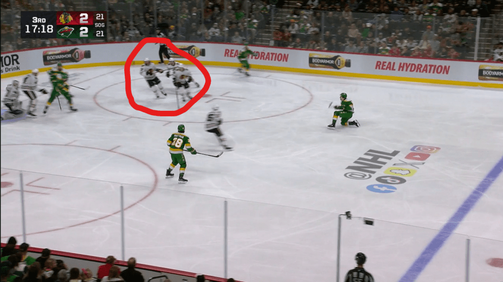 This goal came after Teuvo Teravainen missed a wide-open net as well as the ref prematurely blowing the puck dead as it lay on the goal-line. I really thought the Hawks would seal the deal on this one, but their mental lapses in the DZ gave the Wild the goals they needed to win.