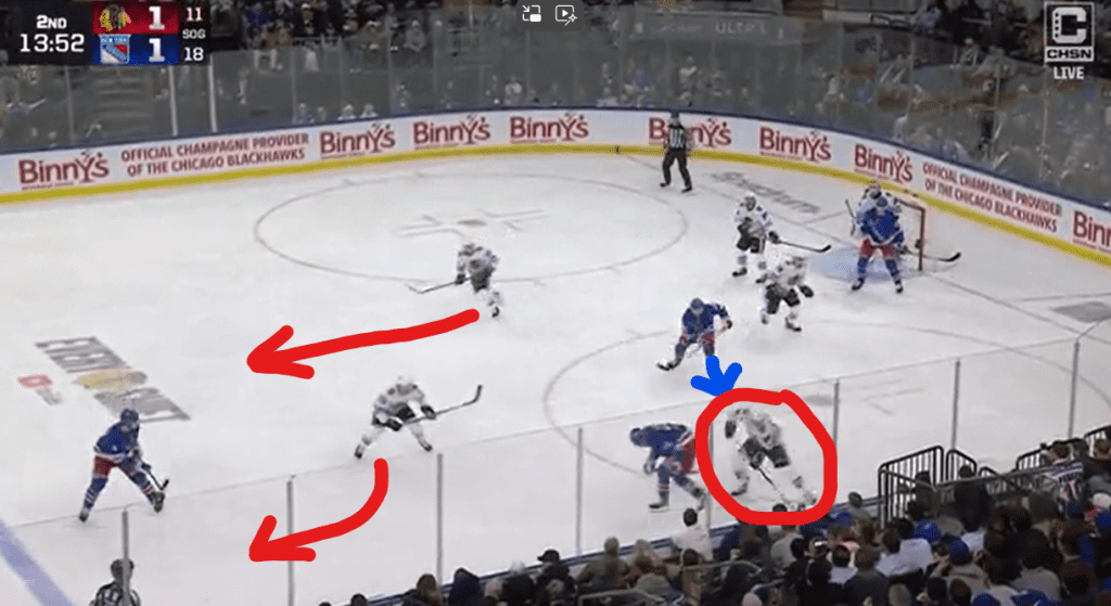 The Hawks' second goal, a beautiful pass from Connor Bedard to Hall, was initiated by Jason Dickinson. Dickinson steals the puck from K'Andre Miller and makes the pass under pressure. That can't be ignored.