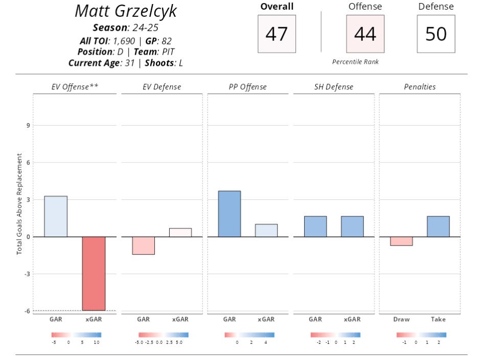 Grezlcyk scored 40 points last season (39 of them assists) on a tanking Pittsburgh Penguins team. His point total is a career anomaly; the 31-year-old defenseman had a career high of 26 points with the 2022 Boston Bruins. Yet 31 other teams decided to pass up on him over the summer until the Blackhawks signed him off of a professional tryout (PTO).