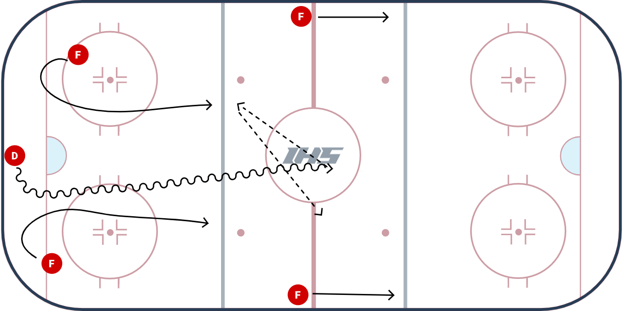 Where the Hawks still struggle is their entry. They try to utilize the double-late entry (not the slingshot, which is different), which works great when you have a team of fast skaters. In fact, most NHL teams use some form of a late entry on their PP because it builds speed to catch the penalty killers off guard and out of position.