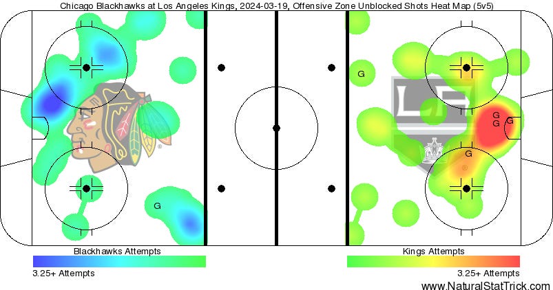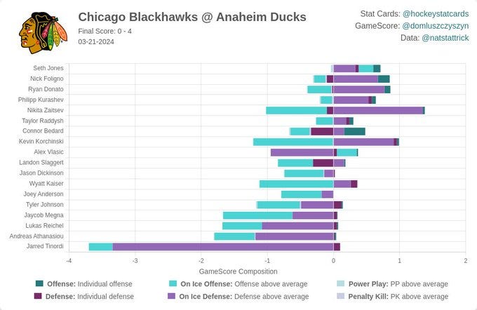 What was horrible was the Korchinski-Megna show. Particularly, Jaycob Megna who I caught just standing there like a traffic cone a few times. I'll excuse Korch and Kaiser all day long. But Megna, a 1.34 expected goals against isn't going to cut it.