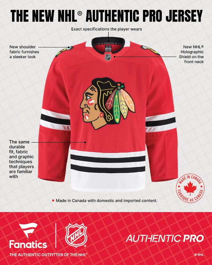 The other news is that Fanatics has officially taken over for Adidas. For now, the designs are set to be the same. The only visual difference, as far as I can tell, is that there are no “dimples” on the shoulders.
