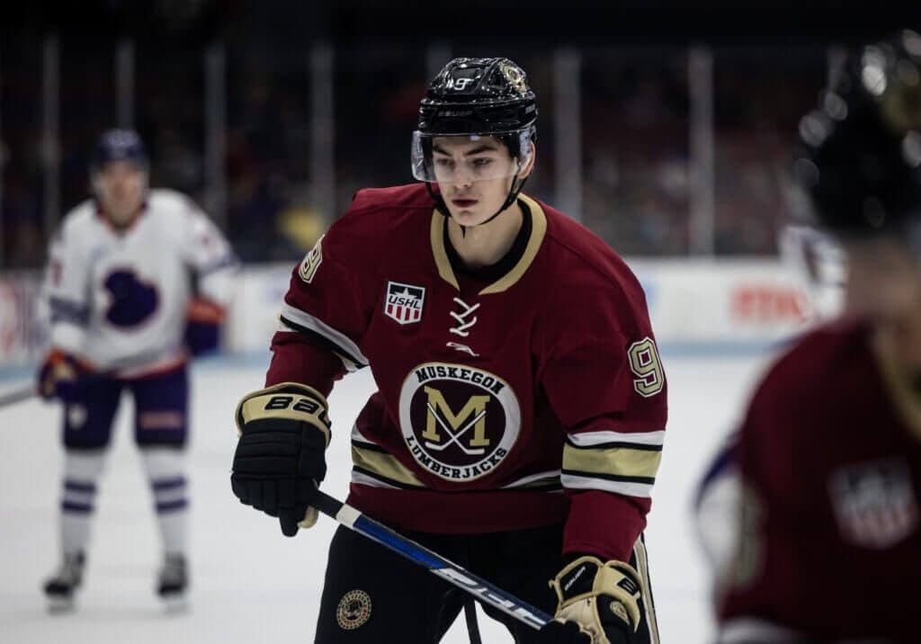 He had 68 points in 61 games in the USHL with the Muskegon Lumberjacks. Sacha will be with North Dakota next year playing college hockey.